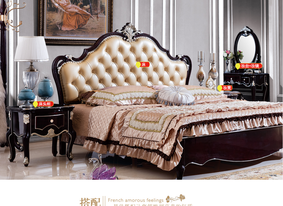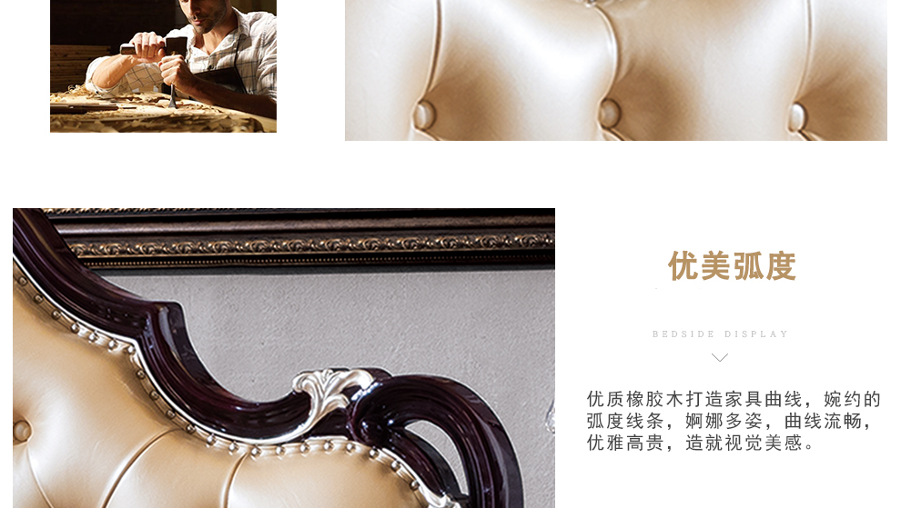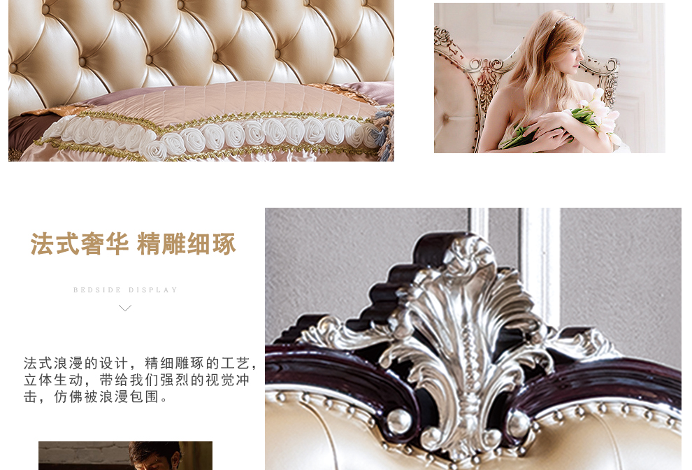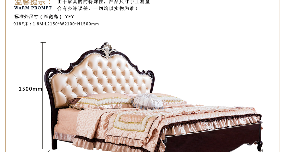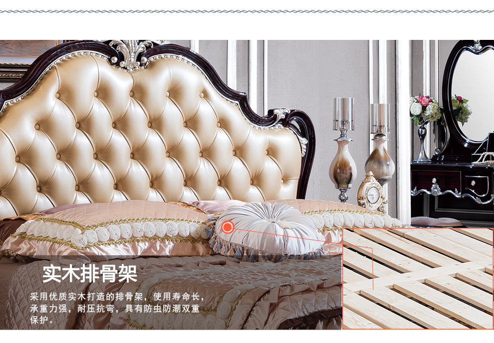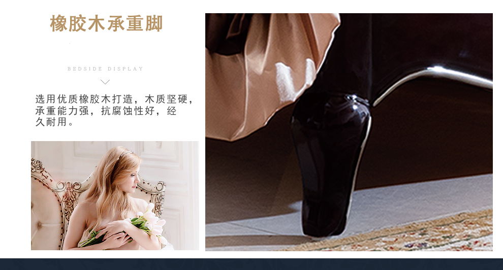商品名称:△千匠一品法式风格精选优质橡胶木1.8M床918-H