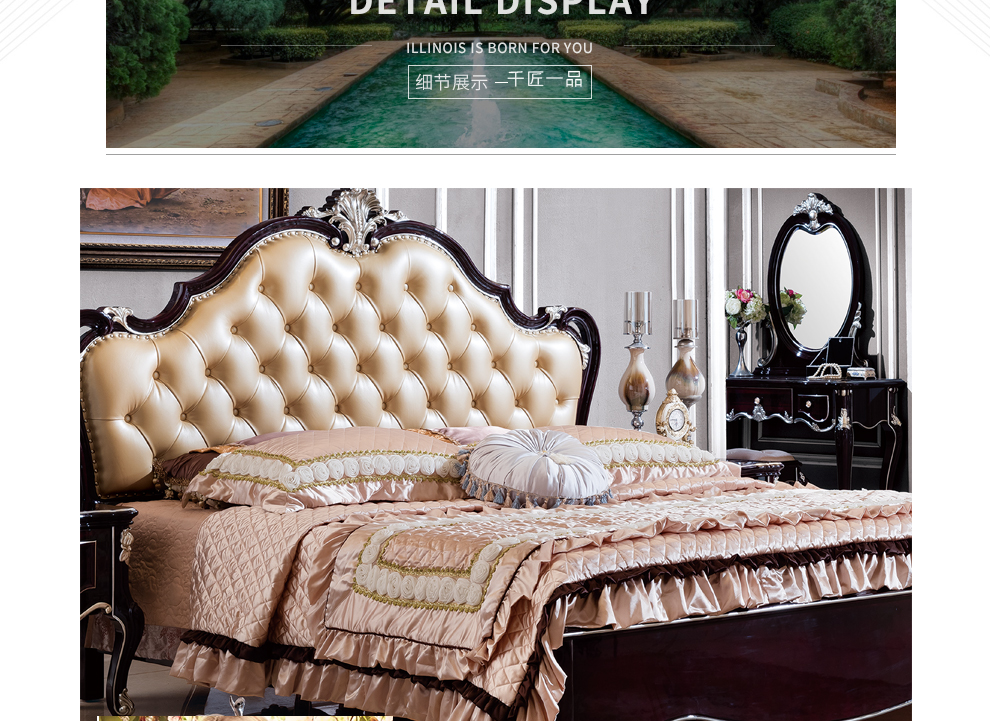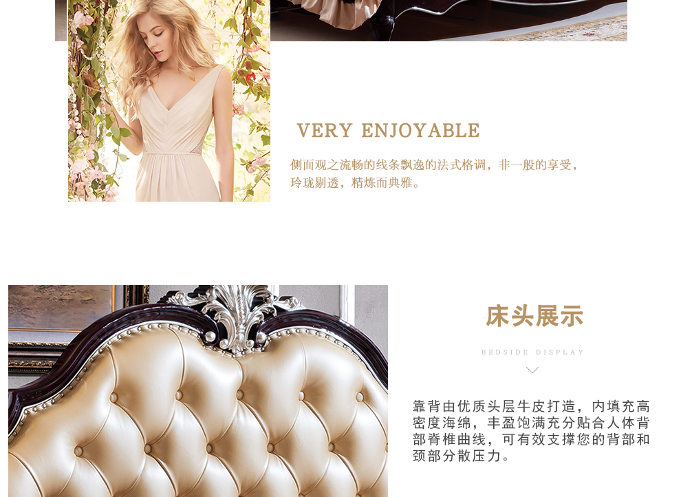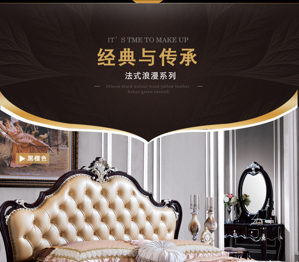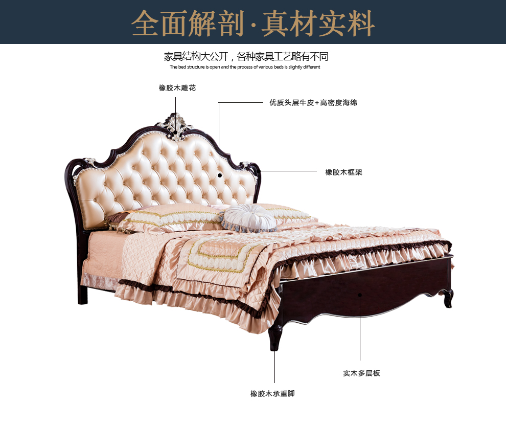 商品名称:△千匠一品法式风格精选优质橡胶木1.8M床918-H