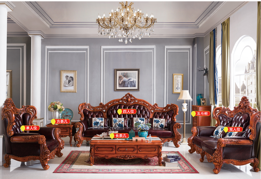 △千匠一品法式风格精选优质橡胶木组合沙发923-H