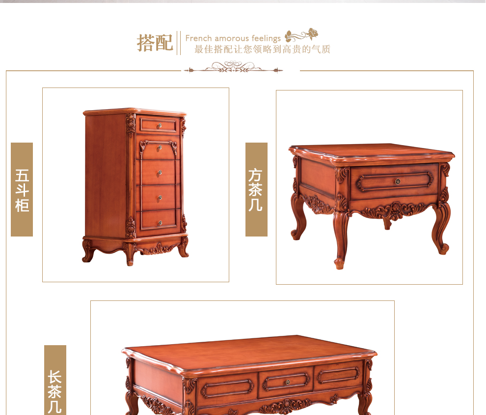 △千匠一品 法式风格精选优质橡胶木沙发组合926-H