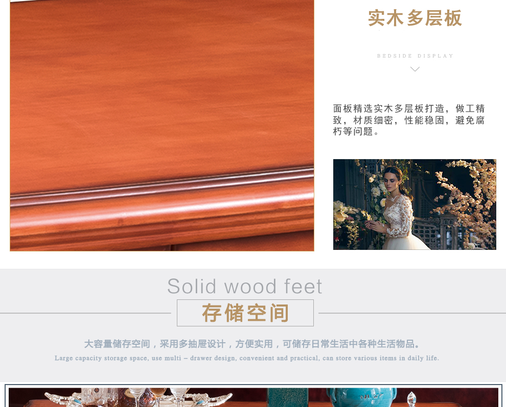 千匠一品 法式风格精选优质橡胶木四五斗柜909-H