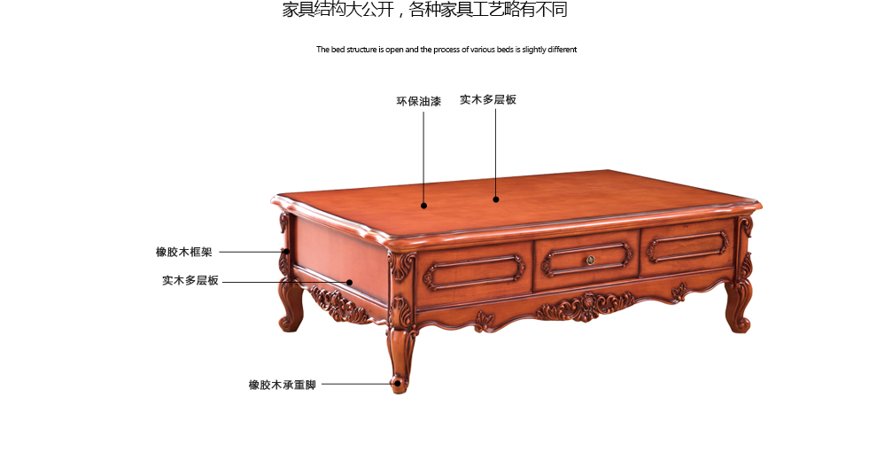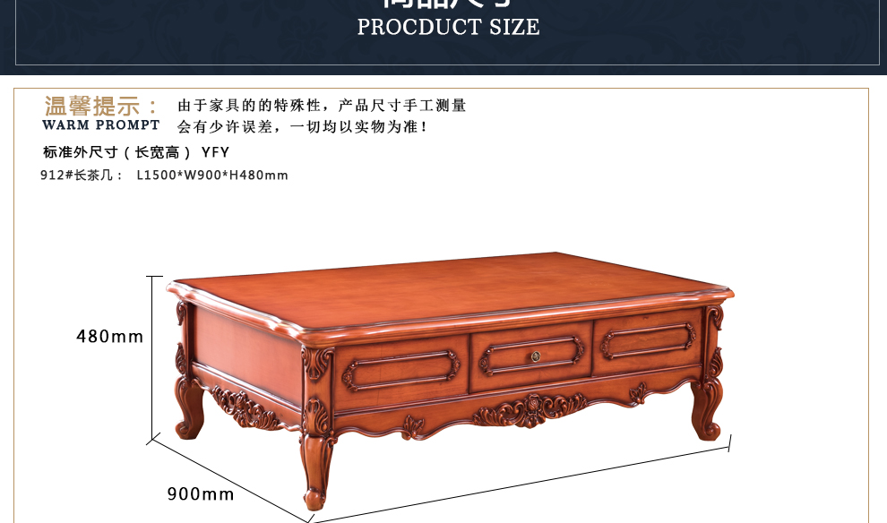 商品名称:△千匠一品法式风格精选优质橡胶木长茶几912-H