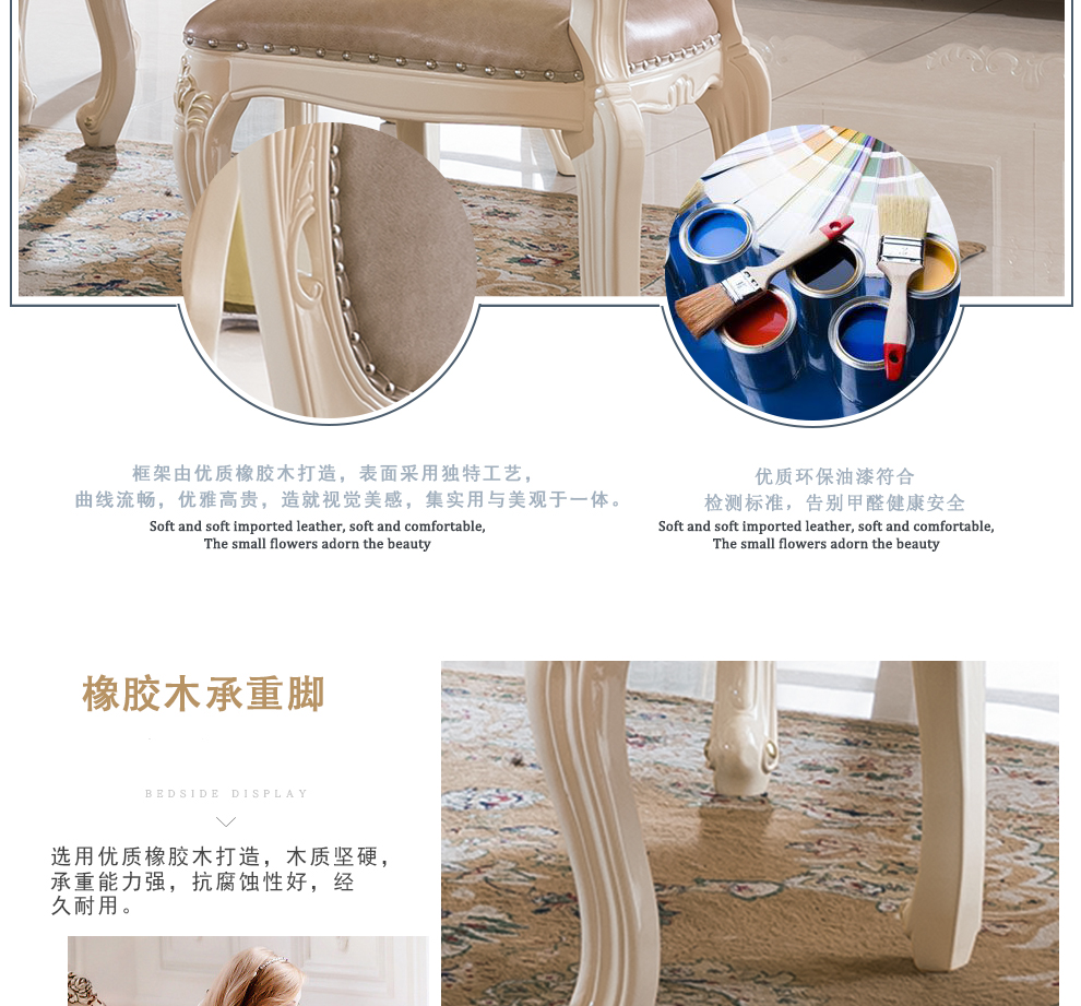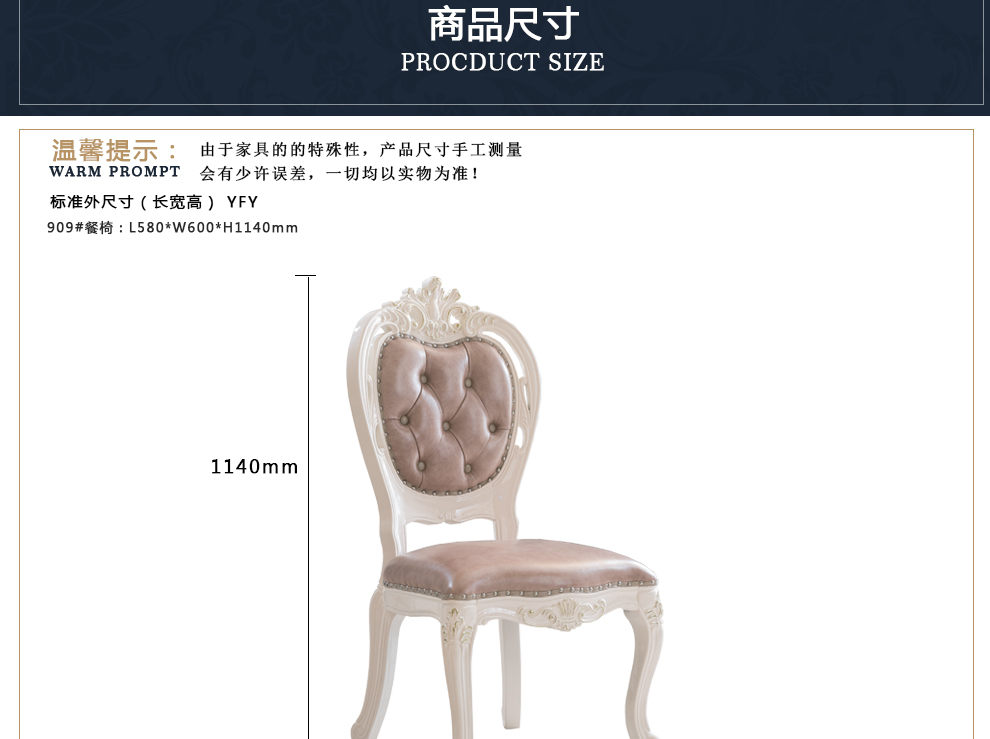 商品名称:千匠一品法式风格精选优质橡胶木餐椅909-H