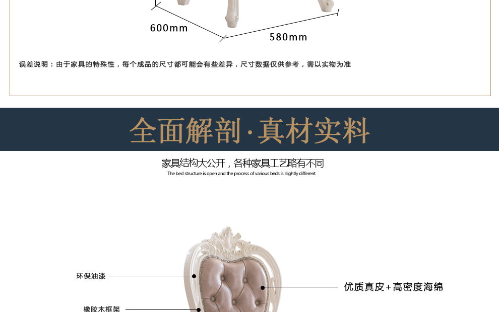 千匠一品法式风格精选优质橡胶木餐椅909-H