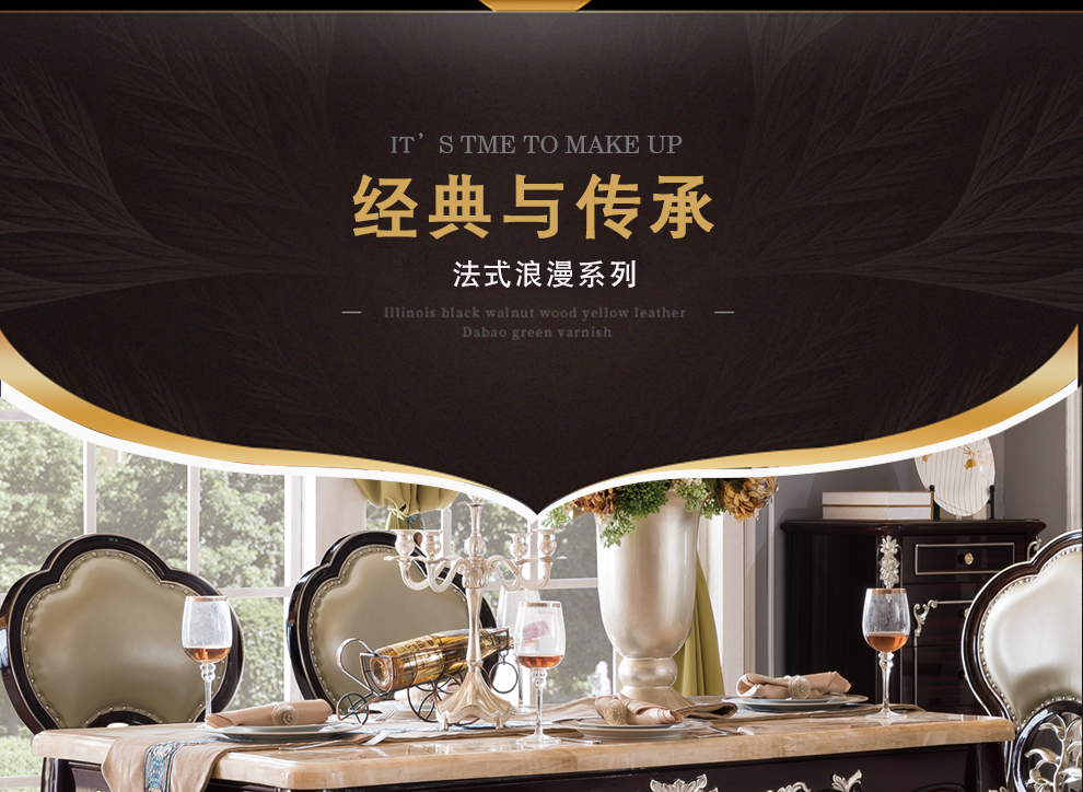 千匠一品法式风格精选优质橡胶木长餐台911-H