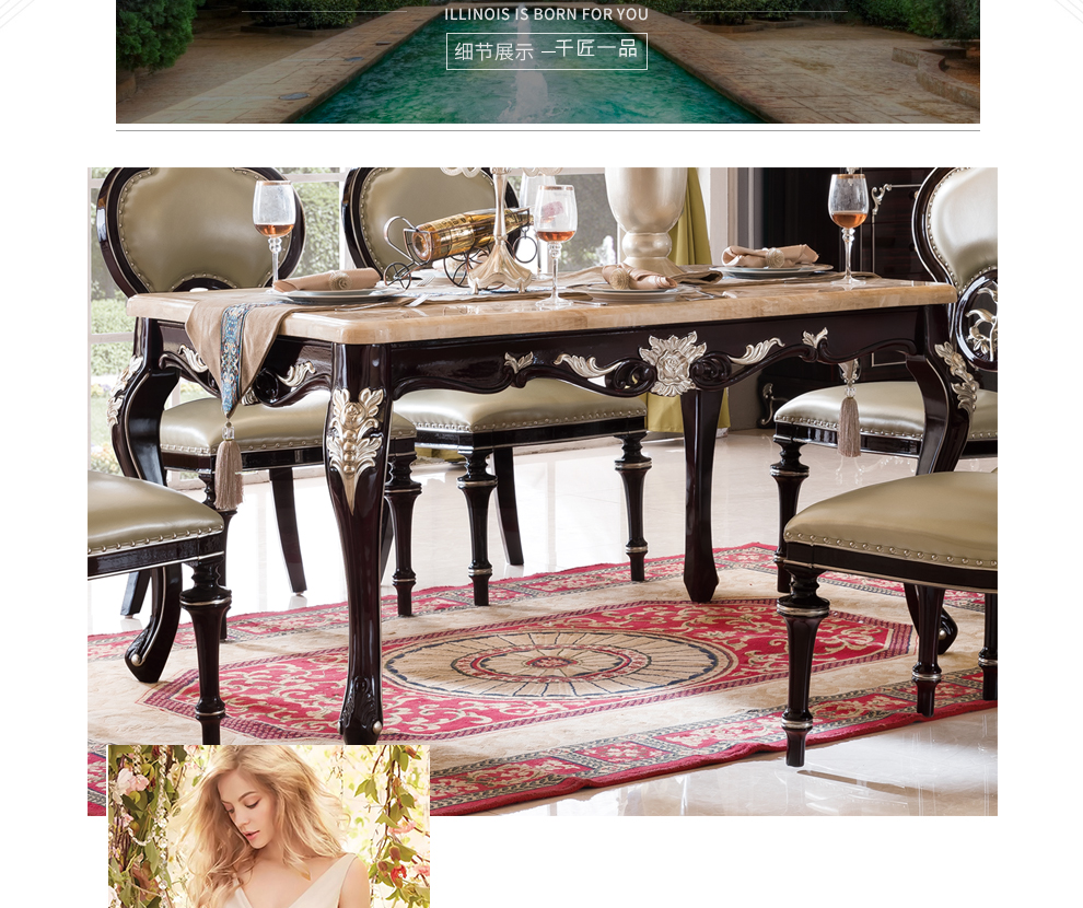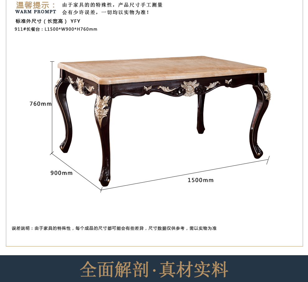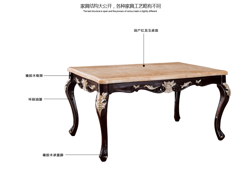 商品名称:千匠一品法式风格精选优质橡胶木长餐台911-H