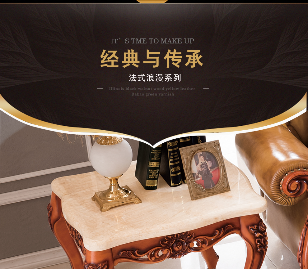 千匠一品法式风格精选优质橡胶木长茶几911-H