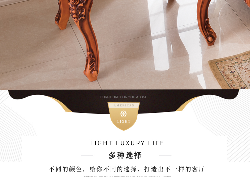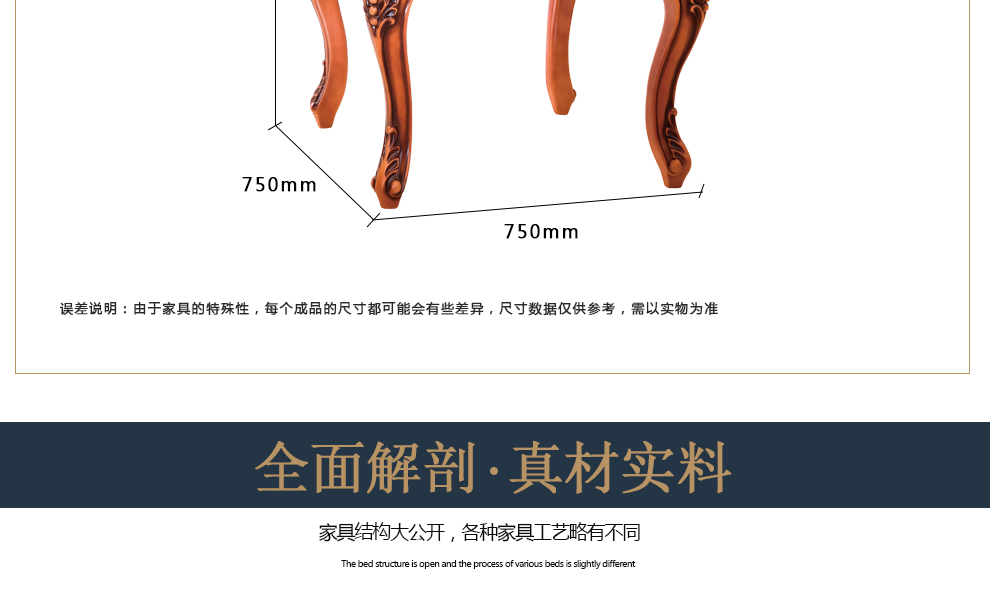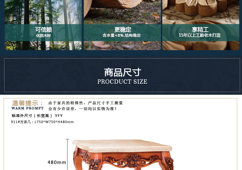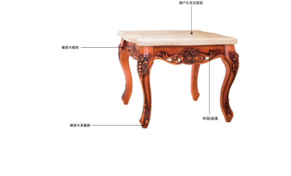 商品名称:千匠一品 法式风格精选优质橡胶木方茶几911-H