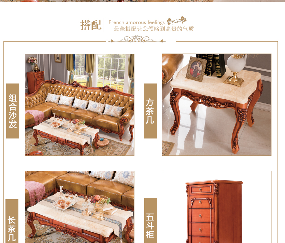 △千匠一品法式风格精选优质橡胶木沙发组合927-H
