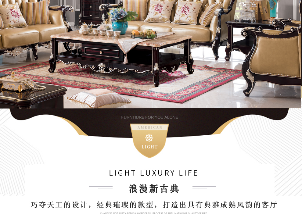 △千匠一品法式风格精选优质橡胶木沙发组合929-H