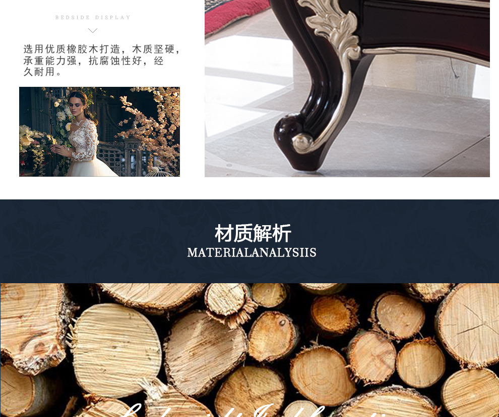 千匠一品 法式风格精选优质橡胶木四五斗柜909-H