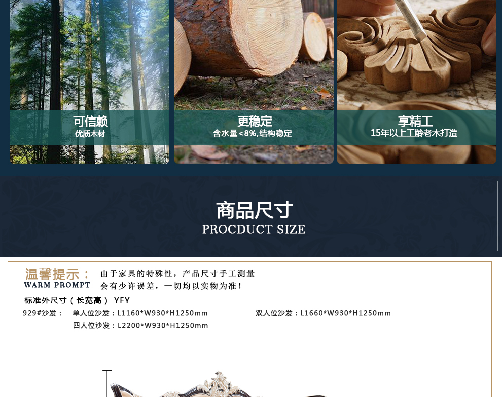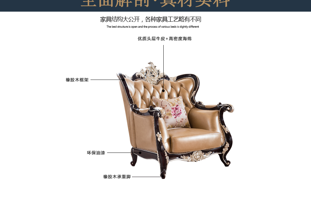 商品名称:△千匠一品法式风格精选优质橡胶木沙发组合929-H
